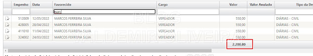 Segundo empenhos, o mesmo já realizou 8 diárias, somando um total em faturamento de R$ 4.400,00.